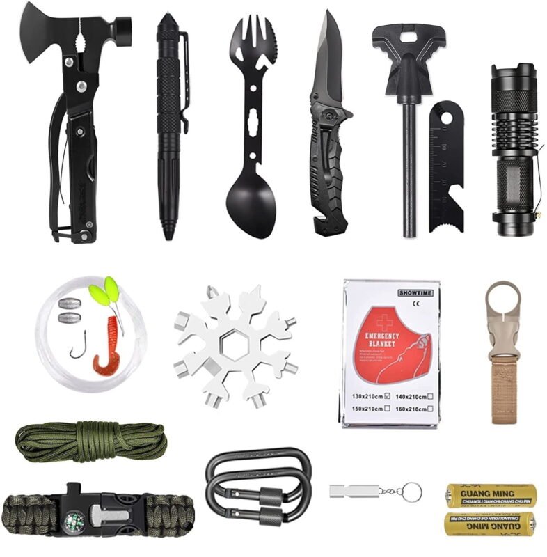 Papildomi elementai: galąstuvas, titnagas, švilpukas, diržo pjoviklis, stiklo dauziklis.