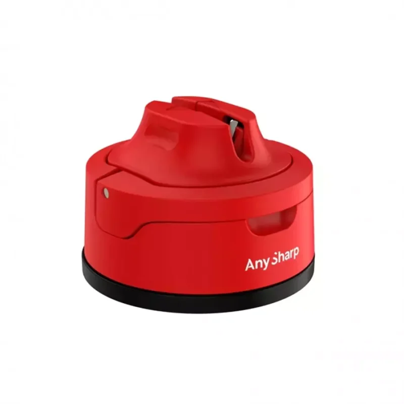 Raudonos spalvos galąstuvas „AnySharp Classic Evo“ yra naujoviškas įrankis, skirtas greitai ir tiksliai pagaląsti peilius, kad jūsų virtuvės įrankiai vėl