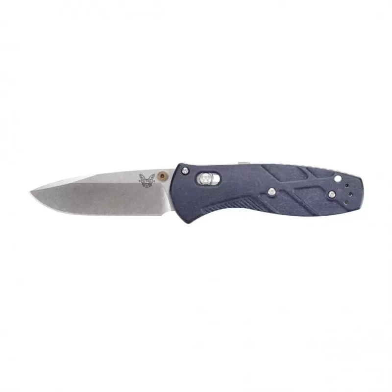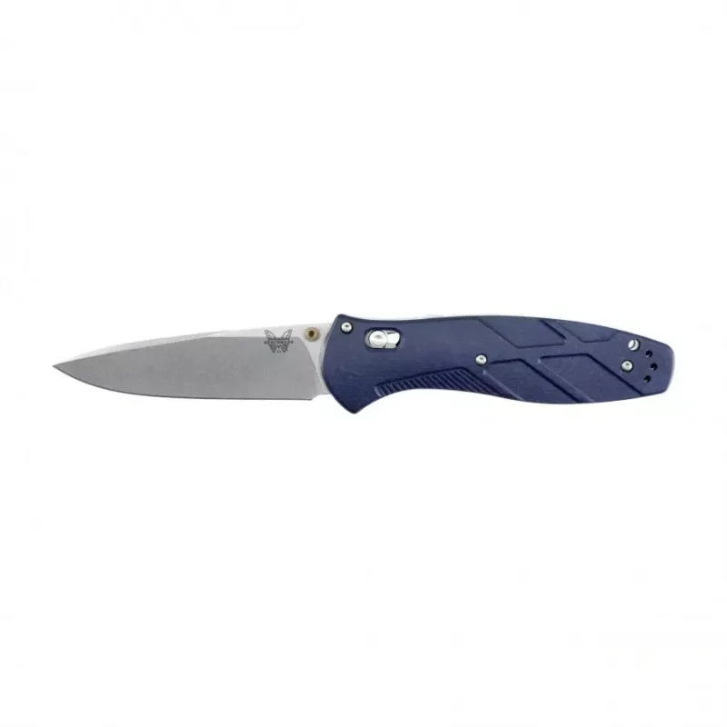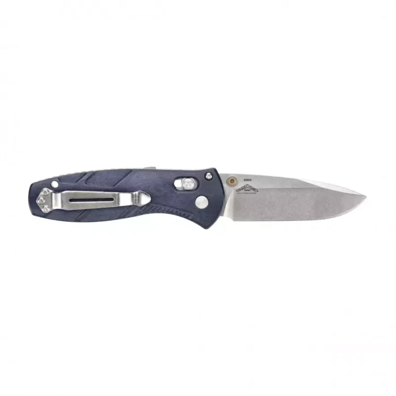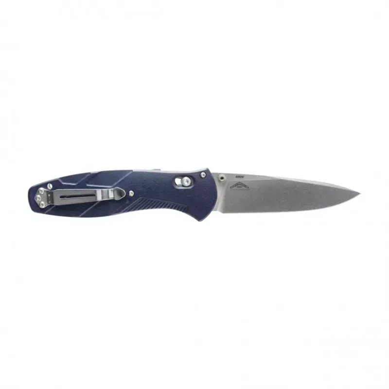Benchmade 585-03 Mini Barrage – tai nedidelis sulankstomas peilis kasdieniam naudojimui, su CPM-S30V plieno pagalbine geležte, kontūruota rankena iš mėlyno