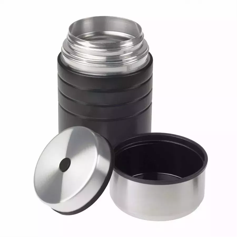 Esbit Food Jug Majoris 0,6 l juodos spalvos maisto termosas pagamintas iš aukščiausios kokybės nerūdijančio plieno. Siekiant apsaugoti termosą nuo atsitiktinio numetimo, kas gali atsitikti laikant jį sušalusia ranka ar mūvint pirštines, išorė padengta specialia juoda, matine neslystančia danga. Termoso matmenys taip pat parinkti taip, kad juo būtų lengva manipuliuoti. Nepriklausomai nuo talpos, jis turi tą patį skersmenį – skiriasi tik aukščiu. Šilto maisto garantija kelionėje Majoris Food Jug yra funkcionalus maisto termosas, sukurtas ilgaamžiškumui ir saugumui užtikrinti. Jis sudarytas iš dviejų nerūdijančio plieno sluoksnių, atskirtų vakuumu, o tai efektyviai išlaiko maistą šiltą ir šaltą ilgą laiką. Aukštos kokybės medžiagos užtikrina, kad produktas neturi kenksmingų medžiagų, tokių kaip Bisfenolis A ir ftalatai. Esbit Food Jug Majoris 0,6 l maisto termoso savybės: Talpa: 0,6 l. Pagamintas iš aukštos kokybės nerūdijančio plieno ir plastiko be BPA ir ftalatų. Dvigubos sienelės su vakuuminė izoliacija užtikrina ilgalaikį temperatūros palaikymą. Sandarus uždarymas su slėgio išlyginimo mygtuku. Guminis pagrindas, apsaugantis nuo slydimo. Dangtelis, kuris gali būti naudojamas kaip papildomas dubenėlis. Turinio temperatūra po 6 valandų: apie 65°C. Turinio temperatūra po 12 valandų: apie 50°C. Turinio temperatūra po 24 valandų: apie 35°C. Esbit Food Jug Majoris 0,6 l maisto termosas – funkcionalus ir patvarus. Norėdama maksimaliai išnaudoti savo maisto termoso savybes, Esbit siūlo prieš naudojimą termosą „formatuoti“. Jei planuojate gabenti karštus produktus, prieš juos įdėdami į termosą, pripildykite jį karštu vandeniu maždaug 4 minutėms, tada vandenį išpilkite ir sudėkite maistą. Panašiai elkitės ir su šaltais produktais (termosą pripildykite labai šalto vandens). Maisto termosas turi sandarų uždarymą su mygtuku, leidžiančiu išlyginti vidinį slėgį – tai apsaugo nuo pratekėjimo ir palengvina atidarymą. Pridedamą dangtelį galima naudoti kaip dubenėlį.