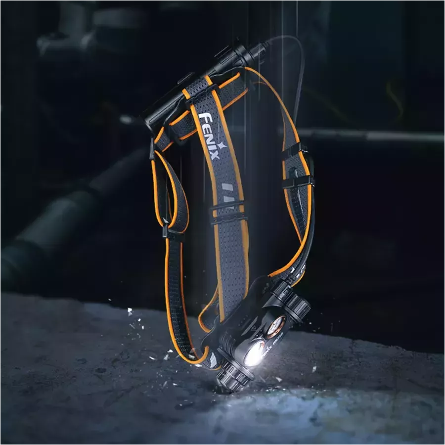 Fenix HM75R yra priekinis žibintas su net keturiais šviesos skleidėjais, USB-C įkrovimo sistema ir dviguba maitinimo sistema. Pastarosios dėka žibintas gali veikti 234 valandas mažos galios režimu ir 14 valandų didelės galios režimu. Momentinis turbo režimas leidžia pasiekti iki 1600 liumenų srautą. Fenix HM75R – priekiniai žibintai reikliems naudotojams Žibintas turi tvirtą ir patvarų korpusą, pagamintą iš lengvo magnio lydinio, atsparaus mechaniniams pažeidimams, korozijai ir atmosferos poveikiui. Pagrindinis žibinto šviesos šaltinis yra baltas SST40 diodas, kuris skleidžia maksimalų 1600 liumenų srautą šaltos spalvos, rekomenduojamą visoms reikmėms, kurioms reikia intensyvumo ir maksimalaus ryškumo. Nuo lygaus atšvaito atspindėta šviesa turi koncentruotą srautą, kurio veikimo atstumas siekia iki 223 m. Be didelio nuotolio skleidėjo, priekiniame žibinte taip pat naudojamos dvi neutralios spalvos Luminus SST20 diodos ir raudona OSRAM GR QSSPA1.23 dioda. Žibintas leidžia reguliuoti apšvietimo kampą – tai atliekama pakreipiant visą žibinto modulį. Fenix HM75R priekinis žibintas – dvigubas maitinimas Fenix HM75R priekinis žibintas maitinamas įmontuotu 18650 akumuliatoriumi. Papildomas energijos šaltinis yra baterijos ARB-LP21 talpa, įdėta subalansuoti galvos galą. Kai 18650 akumuliatoriaus energija išsenka, tiesiog įjunkite bateriją iš talpos, kad pradėtumėte žibinto įkrovimą. Žibintą galima naudoti įkrovimo metu. Talpą galima bet kada atjungti ir naudoti kaip išorinę bateriją (power bank). Dėmesio! Baterijos ARB-LP21 talpa nėra komplekte. Ją reikia įsigyti atskirai. Modelyje įrengtas USB-C prievadas, kuris leidžia įkrauti akumuliatorių didele 1,5 A srove neišimant jo iš įrenginio. Tai labai funkcionalus sprendimas, ypač kai planuojama ilgai dirbti su priekiniu žibintu. Fenix HM75R – patikimas lauko priekinis žibintas Dvigubų mygtukų naudojimas padaro žibinto valdymą labai paprastu ir nereikalauja nusiimti žibinto nuo galvos. Kiekvienas skleidėjas valdomas atskiru jungikliu, kuris taip pat naudojamas ryškumo lygiui keisti. Fenix HM75R priekinis žibintas turi apsaugą nuo atvirkštinio poliškumo, apsaugančią nuo netinkamo baterijos įdėjimo. Žibintas pasižymi aukšta IP68 apsaugos klase. Tai reiškia, kad jis atsparus dulkėms, smėliui, stipriam lietui ir netgi visiškam panardinimui į vandenį (2 m) 30 minučių. HM75R sėkmingai gali būti naudojamas bet kokiomis oro sąlygomis, praktiškai bet kokiai fizinei veiklai. Patogų žibinto nešiojimą ant galvos užtikrina guminis, prakaitą sugeriantis dirželis su atspindinčiais elementais, didinančiais mūsų matomumą ir saugumą naktį judant keliu ar taku. HM75R naudojamas pastovios srovės valdiklis, kuris garantuoja ilgesnį žibinto veikimo laiką. Dėmesio! Prijungus talpą (parduodama atskirai), žibinto veikimo laikas žymiai pailgėja, tačiau srauto galia sumažėja (iki 1200 liumenų). Fenix HM75R priekinis žibintas – savybės Maksimali žibinto galia yra 1600 liumenų, maksimalus atstumas 223 metrai. Žibintas naudoja vieną Luminus SST40 LED diodą, du neutralius baltus Luminus SST20 LED diodus ir vieną raudoną OSRAM GR QSSPA1.23 LED diodą; kiekvienas iš jų turi iki 50 000 valandų tarnavimo laiką. Maitinamas baterija ARB-L18-3400 arba iš baterijos ARB-LP21 talpos (parduodama atskirai). Aukštos kokybės korpusas iš lengvo ir patvaraus magnio lydinio. Sukamasis jungiklis ir elektroninis jungiklis užtikrina lengvą ir greitą valdymą. Išmani ryškumo mažinimo funkcija padeda išvengti žibinto perkaitimo. Greito USB tipo C įkrovimo prievadas su vidine vandeniui atsparia danga. Šviesa Režimas Maks. šviesos srautas [lm] Maks. veikimo laikas [val min] Atstumas [m] Maks. šviesumas [cd] Koncentruotas turbo 1600 1,5 val 223 12448 aukštas 800 3,5 val 158 6262 vidutinis 350 11 val 101 2559 žemas 50 5 val 50 min 39 383 Išsklaidytas turbo 1000 1 val 50 min 60 1071 aukštas 400 4 val 43 432 vidutinis 150 8 val 25 163 žemas 5 100 val 5 10 Raudonas aukštas 120 5 val 20 min 16 70 vidutinis 30 32 val 9 20 žemas 5 110 val 4 4 stroboskopas 5 220 val – –