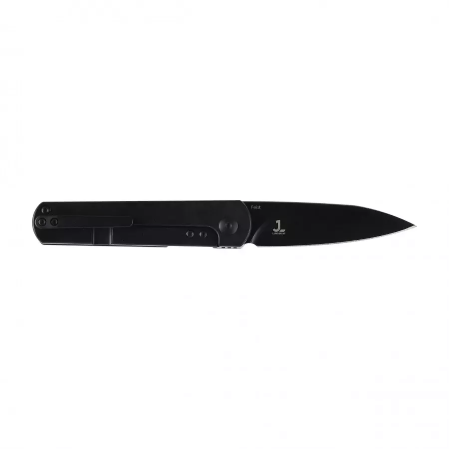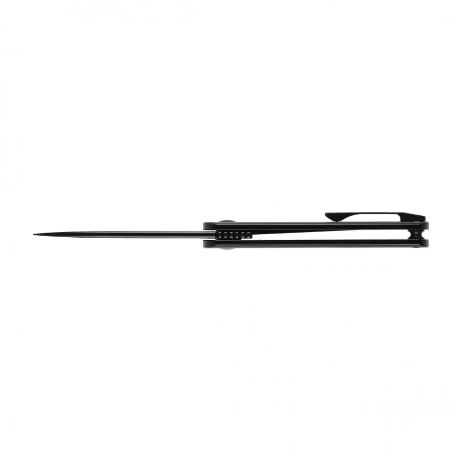 Kizer Feist Ki3499 – minimalistinis peilis, skirtas kasdieniam naudojimui, sukurtas Justino Lundquisto, tradicinių amatų mėgėjo ir patyrusio peilių meistro. Ašmenys pagaminti iš aukštos kokybės nerūdijančio plieno. Naudingo drop-point profilio ašmenys pagaminti iš miltelinio nerūdijančio plieno CPM-S35VN, grūdinto iki 58-60 HRC kietumo. Dėka šios naujos plieno rūšies, tiesi pjovimo briauna labai ilgai išlaiko aukštą darbinį aštrumą ir tuo pačiu yra gana lengvai galandama. Atsižvelgiant į CPM S35VN specifiką, galandimui rekomenduojame naudoti deimantinius galąstuvus. Kasdienį peilio pobūdį pabrėžia aukštas įgaubtas šlifavimas, kuris yra kompromisas tarp ašmenų patvarumo ir aukštų pjovimo savybių. Geležtė padengta juodu apsauginiu paviršiumi, saugančiu nuo smulkių įbrėžimų ir šviesos atspindžių. Peilis aprūpintas tvirtu rėmo užraktu. Už sklandų ir labai dinamišką geležtės atlenkimą atsakingi rutuliniai guoliai ir priekinis atvartas, patogiai valdomas nykščiu. Atlenkus ašmenis, jie tvirtai užfiksuojami monolitinio rėmo užrakto pagalba, turinčio sustiprintą plieninį intarpą. Šis užrakto tipas pasižymi dideliu patvarumu, atsparumu nešvarumams ir labai patogiu naudojimu. Paprastos, minimalistinės rankenos apdailos, pagamintos naudojant precizinius CNC stakles, iš lengvo ir itin tvirto titano juodos spalvos, taip užtikrinant didelį patvarumą ir efektyvų peilio dizainą. Rankenos gale yra spaustukas, leidžiantis patogiai nešiotis peilį kišenėje.