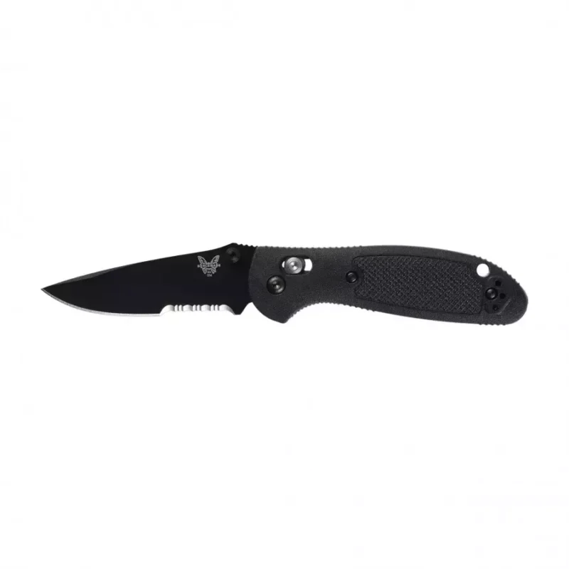 Ašmenų profilis – tai modifikuotas „drop-point“, su aiškiai iškeltu viršutiniu kraštu ir frezuotais grioveliais pirštams. Tvirti, 3 mm storio ašmenys tinka ir lengviems darbams gamtoje ar kaip atsarginis „survival“ peilis. Ovalios išpjovos sumažina svorį ir leidžia peilį patogiai atlenkti nykščiu.