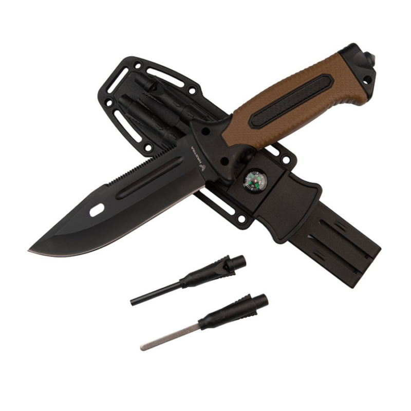 Walther SOK 2 yra kasdieniam naudojimui skirtas spyruoklinis peilis su 440C nerūdijančio plieno geležte, lengva polimero rankena ir patikimu galiniu užraktu (back-lock). Walther SOK 2 buvo sukurtas kaip lengvas kasdienio naudojimo (EDC) įrankis, užtikrinantis greitą prieigą prie ašmenų, saugų naudojimą ir patogų nešiojimą. Walther SOK 2 spyruoklinio peilio savybės: Tvirti 84 mm ilgio ir „Drop Point“ profilio ašmenys pagaminti iš 440C nerūdijančio plieno. Papildomas galinis užraktas (Back Lock) padidina naudotojo saugumą darbo metu. Greitas peilio atidarymas ir sklandus veikimas. Polimero rankenos užtikrina tvirtą sukibimą, nepriklausomai nuo sąlygų. Aukštos kokybės nerūdijančio plieno Walther SOK 2 peilio geležtė. Peilio geležtė pagaminta iš populiaraus 440C nerūdijančio plieno, grūdinto iki 57-59 HRC. Dėl padidinto anglies kiekio plienas yra atsparus dėvėjimuisi, ilgai išlaiko aštrumą ir yra palyginti greitai bei lengvai galandamas. Tai ypač svarbu žmonėms, neturintiems patirties galandant peilius. Satinuotas plieno paviršius (poliravimo metodas) suteikia peiliui diskretiškos elegancijos. Lengvas pjovimas su „Drop Point“ profilio ašmenimis. Peilis turi siaurą (84 mm) geležtę su naudingu „Drop Point“ profiliu, plokščiu nuolydžiu ir švelniai suapvalinta pjovimo briauna. Toks derinys garantuoja sklandų ir lengvą pjovimą, didelį smaigalio tvirtumą ir universalius peilio naudojimo būdus. Greitas Walther SOK 2 spyruoklinio peilio atidarymas. Geležtė atidaroma didesniu mygtuku ant rankenos. Dėl spyruoklinio mechanizmo geležtė atidaroma akimirksniu, todėl peilis bus paruoštas darbui per kelias sekundes. Ašmenys užrakinami spyruokle (ant nugaros), kuri atlaisvinama šonine svirtimi, pritvirtinta prie ašies. Peilyje įrengtas papildomas galinis užraktas (Back Lock), leidžiantis užrakinti atidarymo mechanizmą, užtikrinantį saugų peilio nešiojimą kišenėje. Walther SOK 2 naudojimo komfortas. Peilis turi lengvas polimero rankenas, kurių neslystanti tekstūra padidina peilio sukibimą su ranka. Kasdienį peilio nešiojimą prie diržo palengvina dėklas, pagamintas iš nailono – audinio, atsparaus įbrėžimams, drėgmei ir pelėsiui.