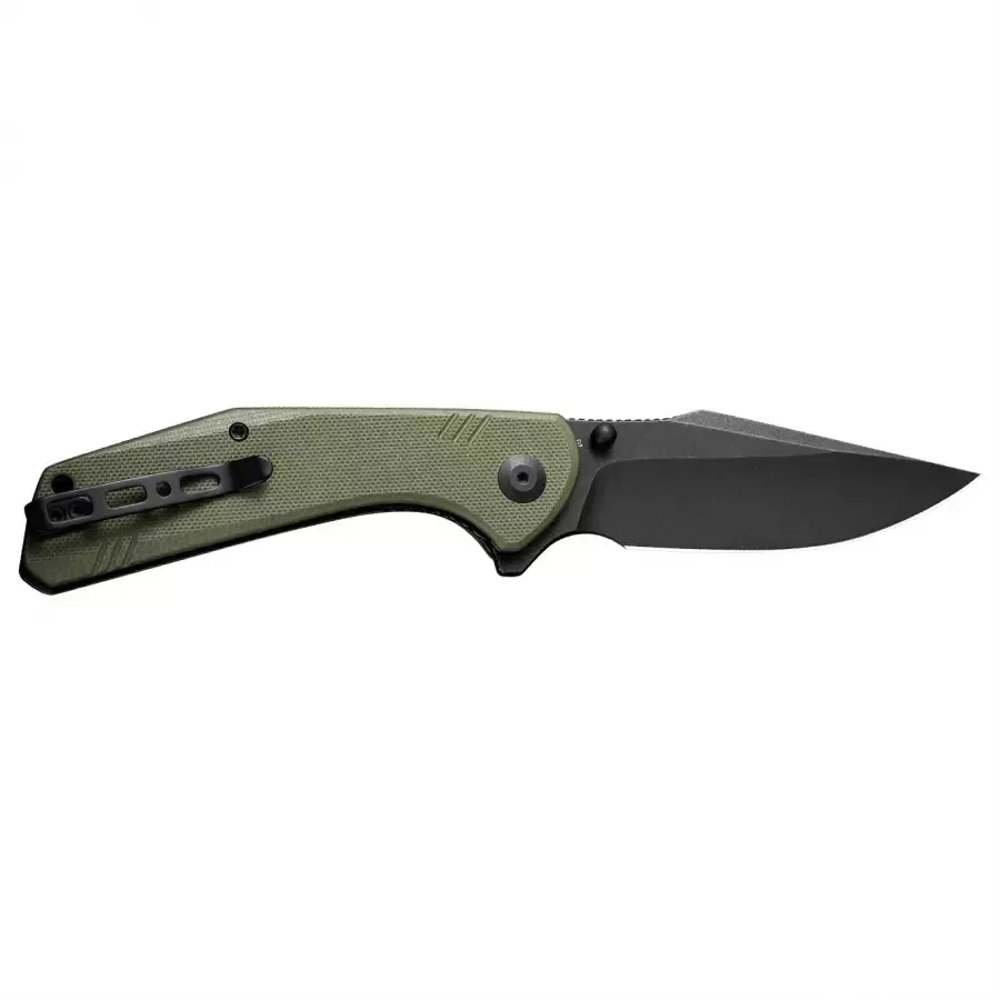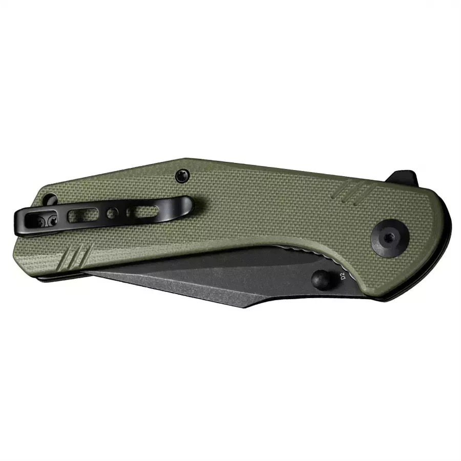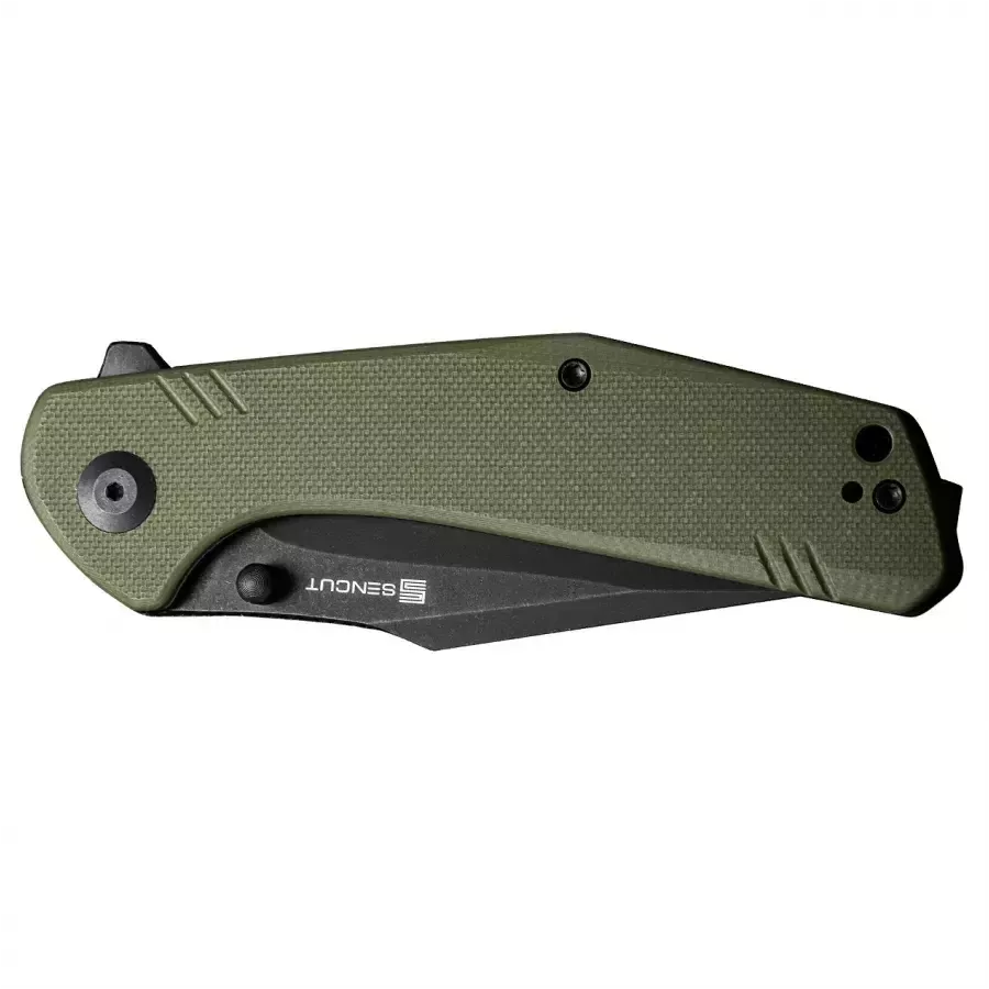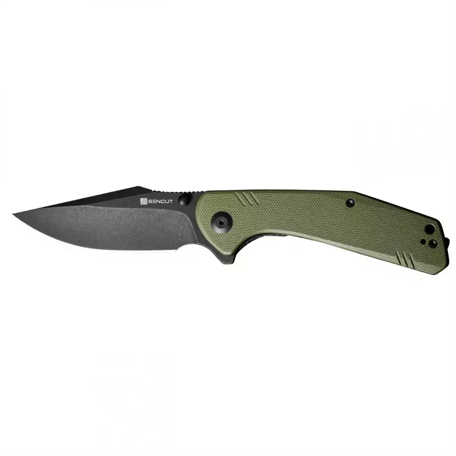 Sencut Actium – tai didelis ir patogus sulankstomas peilis, sukurtas kaip EDC (kasdieninio nešiojimo) rinkinio papildymas. Universalus „drop point“ tipo ašmenų profilis, tvirtas plienas ir patikimas užraktas daro jį peiliu, kuris patenkins tiek kolekcininkus, tiek tuos, kurie peilį vertina išskirtinai kaip patogų įrankį. Sulankstomas peilis Sencut Actium – tvirtas plienas Sencut Actium ašmenys pagaminti iš D2 plieno. Dėl didelio chromo kiekio ir grūdinimo iki 58–60 HRC, medžiaga yra kieta ir patvari. Chromas užtikrina atsparumą korozijai, neįprastą didelio anglies kiekio plienams. D2 gerai išlaiko ašmenų kraštą, o dėl didelio karbidų kiekio mikrostruktūroje pasižymi dideliu atsparumu dilimui. Sulankstomas peilis Sencut Actium – ašmenys Sencut Actium turi Drop Point tipo ašmenis, kurie pasižymi ryškiai išreikštu “pilvu” ir link smaigalio besileidžiančia nugarėle. Nėra labai stori ašmenys ir aukštas, įgaubtas šlifavimas daro pjovimo briauną labai efektyvią. Taip Sencut Actium tampa universaliu peiliu, skirtu paprastiems darbams namuose, už miesto ar gamtoje. Ašmenų nugarėlė yra raižyta ir ant jos galima drąsiai padėti nykštį, o tai palengvina tikslų darbą. Stonewash Dėl Black Stonewash apdailos juodai spalvoti ašmenys padengti netaisyklingais, smulkiais įbrėžimais, kurie gerai maskuoja naujus įbrėžimus, atsirandančius normaliai naudojant peilį. Sulankstomas peilis Sencut Actium – sklandus mechanizmo veikimas ir Liner Lock užraktas Peilis aprūpintas keraminiais rutuliniais guoliais, kurie žymiai pagerina peilio atidarymo mechanizmo darbą. Peilis atidaromas naudojant nykščio kaištį arba flipperį. Patikrintas Liner Lock užraktas suteikia naudotojui reikiamą komfortą ir saugumą. Atidarius, flipperis taip pat sukuria tam tikrą apsaugą, apsaugančią ranką nuo nuslydimo ant ašmenų. Patogi, kompozitinė rankena Sencut Actium turi juodą rankeną, pagamintą iš G10, tai yra stiklo pluošto ir sintetinės dervos kompozito. Rankenų dangteliai turi lygias briaunas, užtikrinančias patogų sukibimą net ilgiau dirbant. Atvira konstrukcija (angl. open-backed) sumažina peilio svorį ir palengvina valymą. Sencut Actium – spaustukas ir dėklas Gamintojas taip pat pasirūpino patogiu peilio transportavimu, aprūpindamas jį dvipusiu spaustuku, kuris buvo sukonstruotas taip, kad įrankis beveik neišsikištų iš kišenės ir nekristų į akis. Peilį taip pat galima nešioti užsegamu užtrauktuku dėklu.