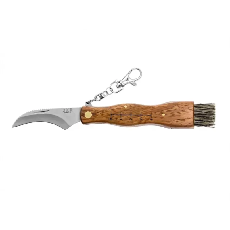 Peilis turi elegantišką graikinio riešuto apmušalą su matiniu paviršiumi. Užvalkalai yra profiliuotos formos, su aiškiu pjūviu pirštui, kas efektyviai pagerina peilio sukibimą ir naudojimo patogumą.